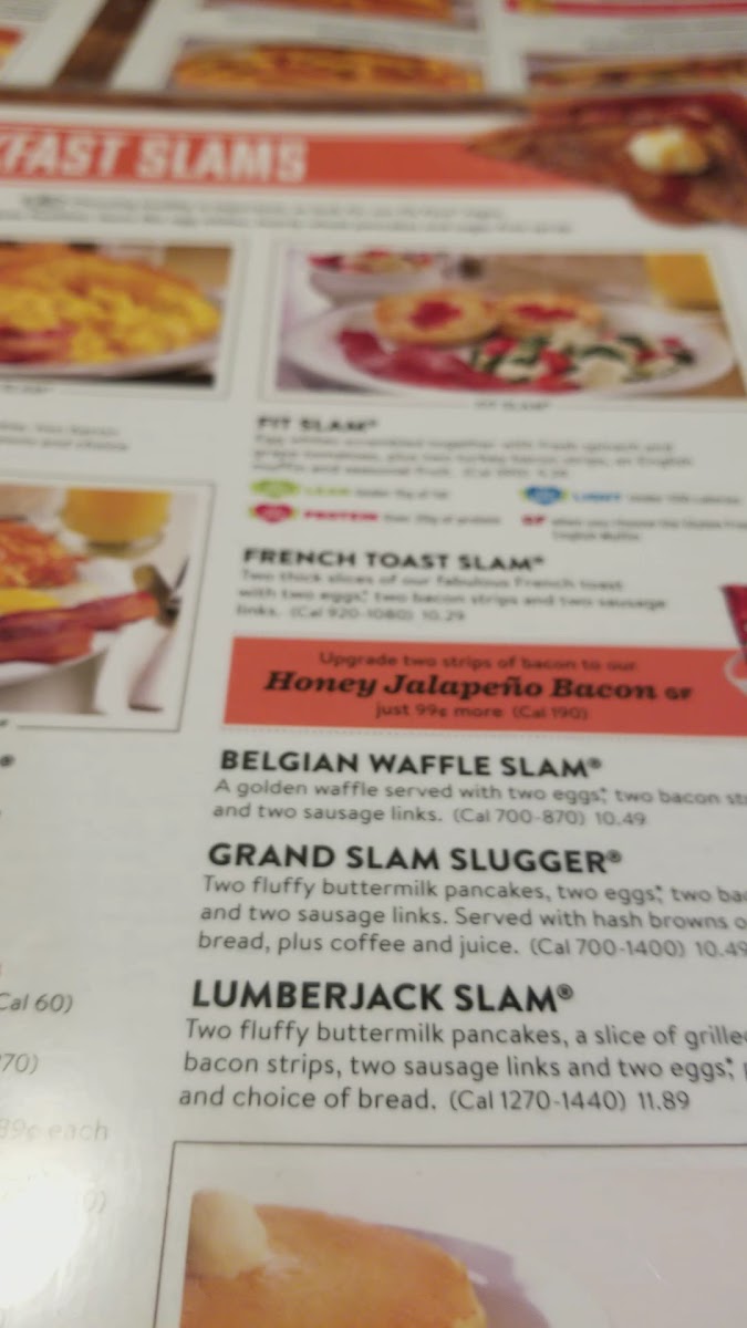 Don't miss this fan-favorite Slam with three slices of brioche French toast topped with powdered sugar. Served with two eggs* made your way, two Applewood-smoked bacon strips and two all-pork sausage links.