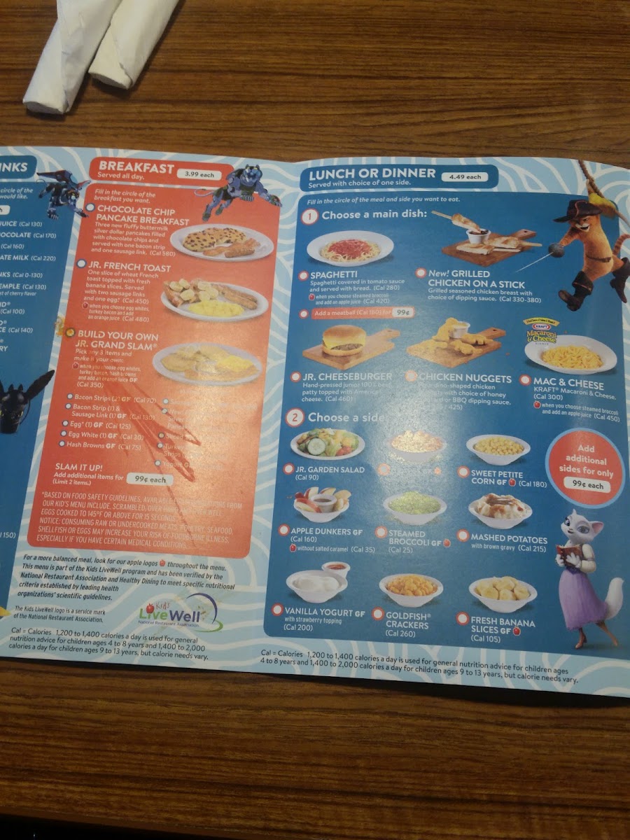 Hit the spot every time with two fluffy buttermilk pancakes, grilled ham, two Applewood-smoked bacon strips, two all-pork sausage links, two eggs* made to order, crispy hash browns and white toast.